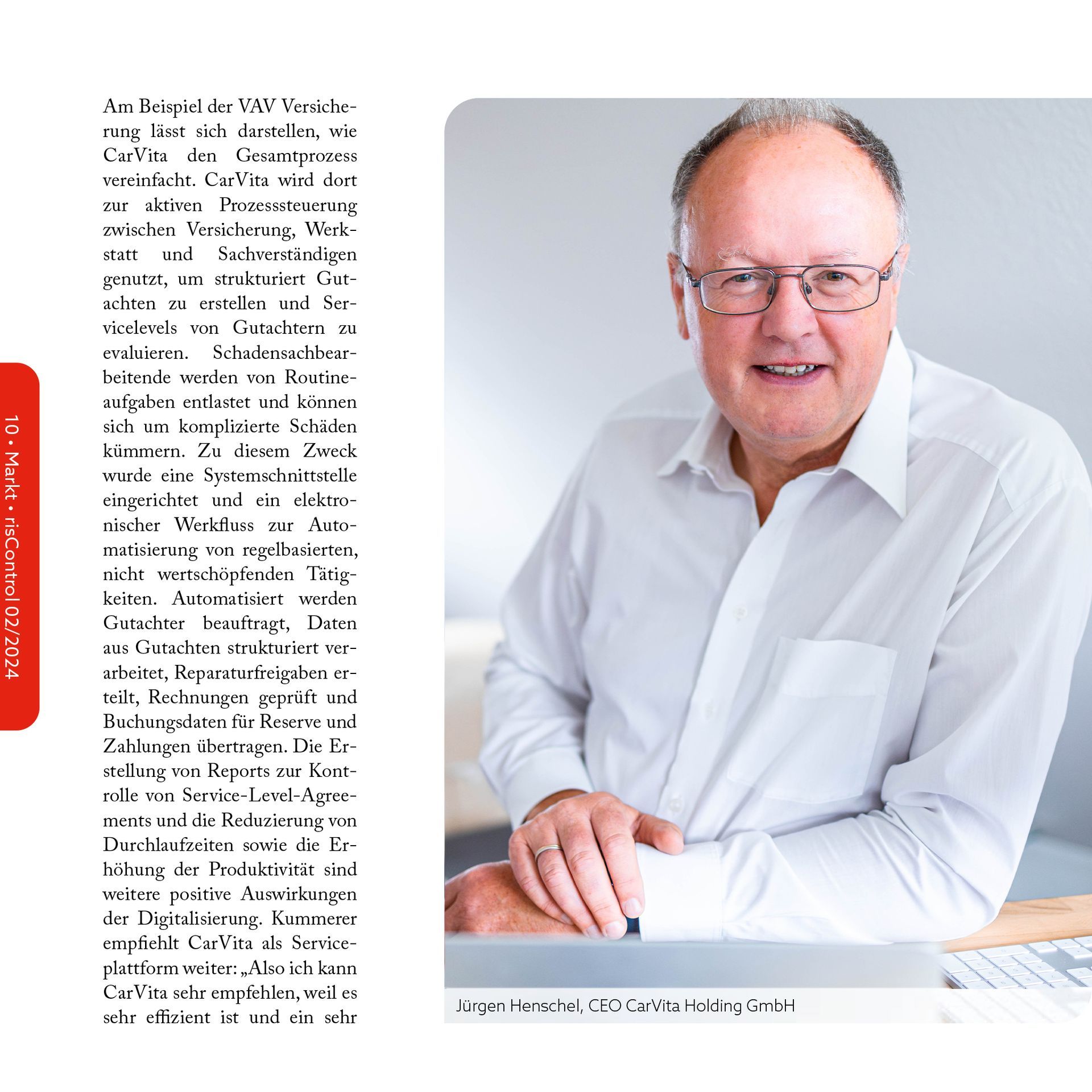 Die aktuelle Ausgabe der risControl, Februar 2024, beleuchtet die Revolutionierung der Prozessabwicklung in der Versicherungsbranche durch CARVITA.